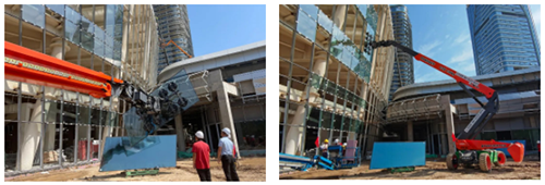 目前,独立BT2612ERTGS已参建数十个玻璃幕墙安装项目,日均装配大尺寸、大重量玻璃超13块,单日最高可达16块,安全高效!
