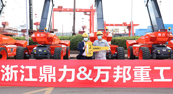 近日,usdt游戏网10台34米臂式浩浩荡荡抵达万邦重工(舟山)有限公司,一抹亮眼的usdt游戏网“红”顺利完成现场交机,双方正式迈出战略合作后的重要一步!